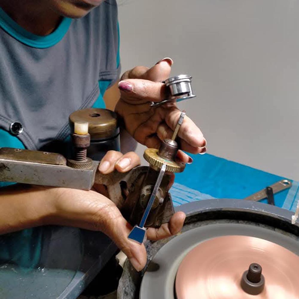Gem Cutting is the art of cutting, shaping, and polishing a rough gemstone into a brilliant and beautiful piece of jewelry.